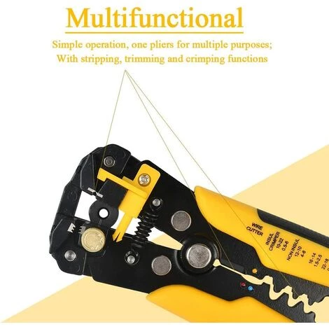 【Réglage automatique】 : notre pince à dénuder automatique convient au dénudage des fils de 10-24 AWG (0,2-6 mm²) et au sertissage de 10-22 AWG (0,5-6 mm²). Ils offrent un ajustement précis pour le traitement de différentes tâches de câble telles que le dénudage, la coupe, le sertissage, et ce dénudeur n’endommagera pas les câbles individuels.