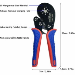 Fabriquée en acier au manganèse 65 de haute dureté, cette pince à sertir de 28 à 5 AWG est multifonctionnelle et durable à utiliser. Il s’applique à l’industrie électronique, à l’automobile, à la réparation d’appareils électriques, etc.