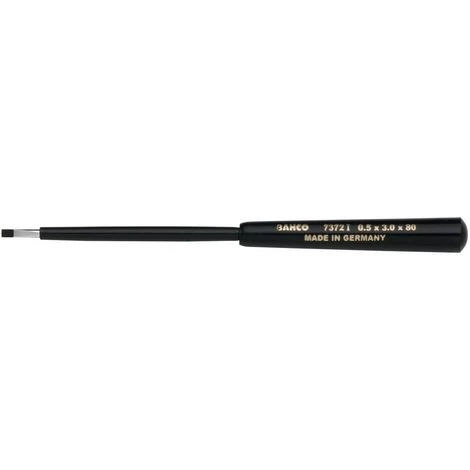 Tournevis de précision pour vis à fente. Poignée : poignée plastique conique et fine. Résistant aux chocs. Lame : lame de qualité supérieure en acier de qualité supérieure. Chromée et entièrement trempée. Pointe brunie pour plus de précision. Jusqu’à la pointe de la lame avec revêtement plastique. ISO 2380 1A. Ce texte a été traduit par une machine.