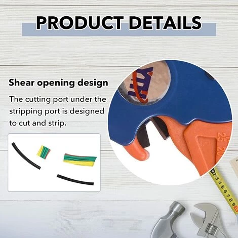 CAPACITY: Des fils de 0,5 à 6 mm peuvent être utilisés. 8 mm de fils de ligne peuvent également être dénudés. Bouton argenté pour régler la force de dénudage des fils, éviter une forte puissance de dénuder le noyau.