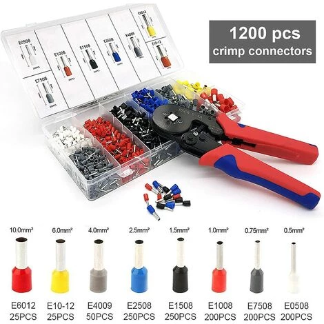 【Jeu de Pinces à Sertir Pratiques】Chaque kit est livré avec un outil de sertissage et 1200 embouts pour embouts isolés et non isolés de 0,25 à 10 mm² pour prendre en charge les petits projets de rénovation domiciliaire et les grandes réparations électriques.