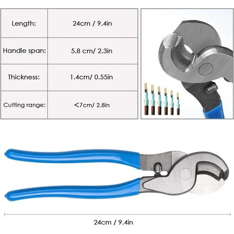 Coupe-câble: 24 * 5,5 * 1,4 cm / 10 * 2,1 * 0,5 pouces