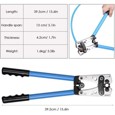 Fabriqué à partir d’acier n ° 45 de haute qualité, cette pince à sertir est très durable et robuste pour sertir la plupart des câbles et assurer une longue durée de vie