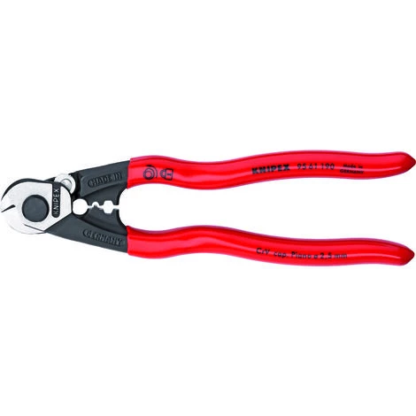 Acier forgé.Pour câble métallique mi-durs – Coupe nette et sans effilochage.Ressort d’ouverture encastré.