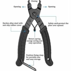Nos pinces à maillons manquants sont fabriquées en acier de haute qualité, robustes et durables. La poignée ergonomique pour une utilisation confortable et pour aider à appliquer la bonne force, durera l’épreuve du temps. Pince à chaîne 2 en 1 – Utilisée pour le retrait rapide des maillons de connexion, outil avancé pour l’ouverture et la fermeture, extracteur et connecteur de maillon principal, remplacement des maillons SRAM, KMC, Shimano et Clark – toutes les chaînes de vitesse, maillons manquants. Poignée antidérapante, conception à ressort permettant d’économiser de l’effort, plus facile à utiliser, supprime et réassemble les maillons principaux. La pince principale avec goupille de sécurité protège contre l’ouverture excessive, il y a aussi un ressort de rappel pour garder la pince prête pour le travail. Au bas du manche de la pince avec un fermoir, fermez le fermoir pour un petit rangement. Parfait pour la mécanique domestique. Compatible avec les chaînes de dérailleur à 5, 6, 7, 8, 9, 10 et 11 vitesses qui utilisent un maillon, vous permet de retirer et de remplacer facilement les maillons en quelques secondes. Taille : 1*17*6cm Couleur : Noir Quantité : 1 pièce