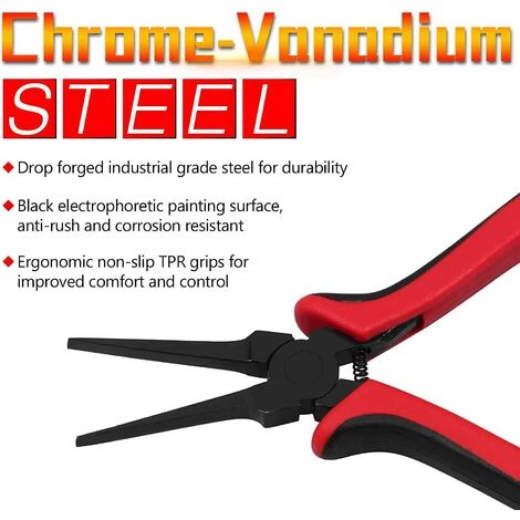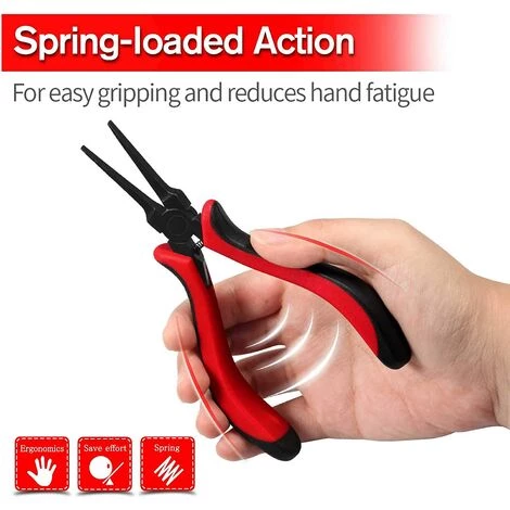 Design : le nez plat fin peut vous aider à atteindre les endroits difficiles avec moins de fatigue de la main et du poignet. Excellent pour travailler dans les endroits exigus. L’action à ressort réduit la fatigue de la main et du poignet pour une utilisationfacile d’une seule main.
