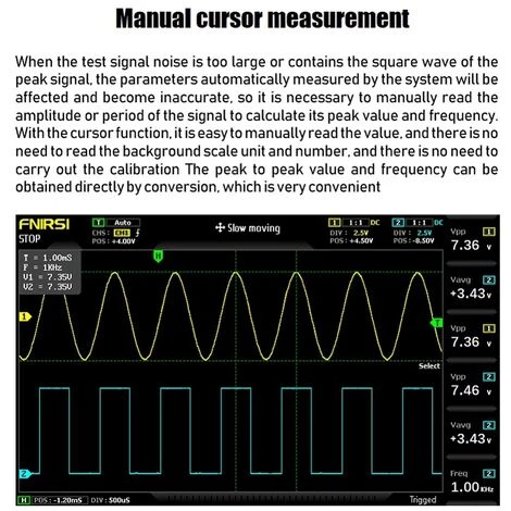 Fonction de mesure du curseur : Il est pratique de mesurer manuellement la période, la fréquence et la tension.