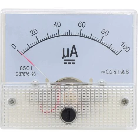 【Specification】Model: 85C1-A DC 0~100UA, Accuracy Grade: ±2.5%, Insulation Resistance: >20MΩ/DC500V, Damping Time: <4S, Storage Temperature: -40℃~70℃, Working Temperature: -20℃~40℃, Relative Humidity≤85%