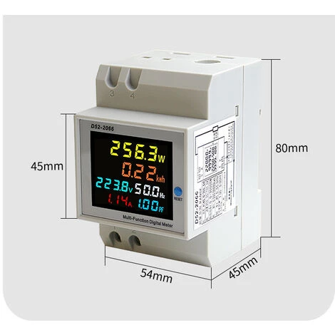 【Multifonction】1. Réinitialisation des données pour plusieurs exigences de mesure. Appuyez sur le bouton de réinitialisation pendant cinq secondes, le compteur numérique sera réinitialisé. 2. La valeur de l’énergie électrique et de l’énergie électrique du temps cumulé est automatiquement enregistrée lorsque l’appareil est éteint. Lorsque la tension de mesure est reconnectée, les données continuent d’être cumulées.