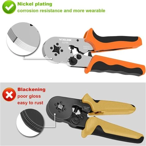 Sertissage précis : la pince à sertir cosse electrique adopte le design à cliquet auto-ajustable, qui peut être automatiquement ajustée en fonction du diamètre de la borne, ce qui améliore la précision et la fiabilité du sertissage, est pratique à utiliser et évite le gaspillage des bornes.