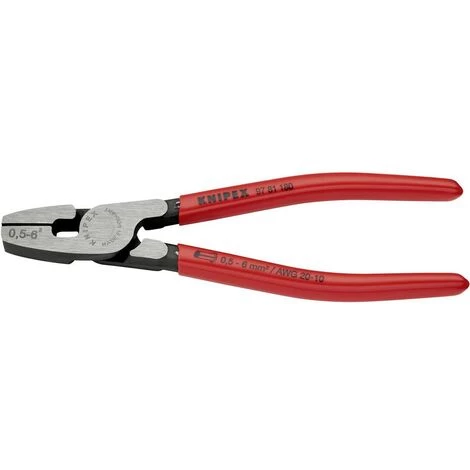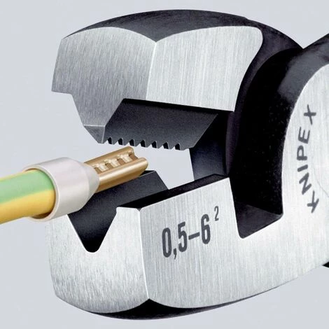 - Pour compresser les cosses de sertissage DIN 46228 partie 1 + 4 entre 0,5 et 6,0 mm²