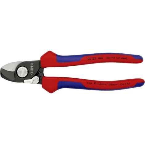 Pour couper les câbles unifilaires et multifilaires en cuivre et en aluminium. Coupe net et sans écraser le câble. Ne convient pas pour les fils d’acier et les conducteurs en cuivre écrouis. Tranchants trempés, meulés avec précision. Coupe facile à une main. Avec ergot protecteur Charnière vissée réglable, sécurité automatique. Acier à outils de qualité spéciale, forgé, trempé à l’huile