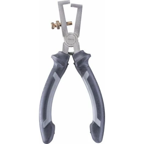Forme de pince à dénuder conforme à la norme DIN ISO 5743, acier CV, finition satin mat, poignée à 2 composant pour une transmission optimale de la force et un travail sans fatigue,avec ressort et vis de réglage, réglage en continue pour les conducteurs à un ou plusieurs fils et fils fins avec isolation en plastique ou en caoutchouc. Avec support de pince pratique pour l’atelier, le clip en plastique se visse tout simplement sur le panneau porte-outils.