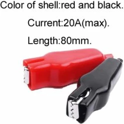 Paramètres : Longueur : 75 mm/2,95 pouces. Courant : 20 A (max). La conception recouverte de plastique rouge-noir couple les bornes de la batterie aux bornes positives et négatives, un excellent outil pour vos projets électriques.