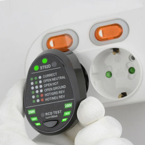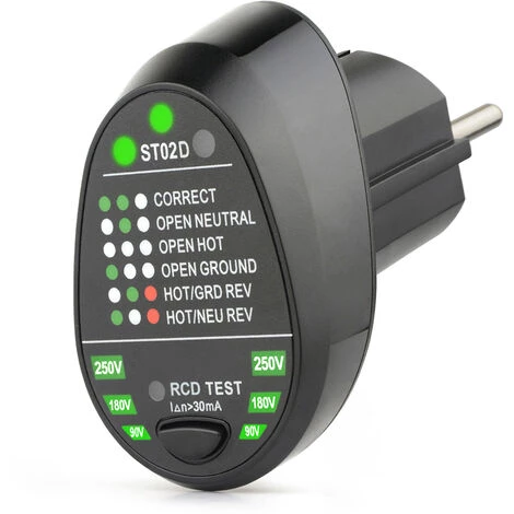 Affichage lumineux à LED – Avec des indicateurs faciles à lire pour indiquer l’état de la prise, facile à évaluer: Correct, Open Ground, Open Neutral, Inverse Live / Neutre, Inverse Live / Ground, Open Live et Inverse Neutre.