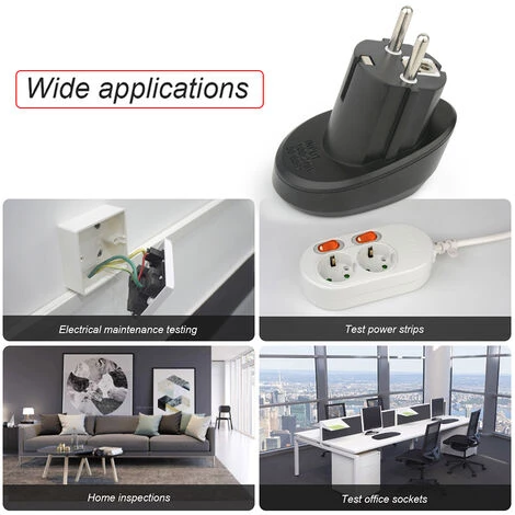 Application large – largement utilisé pour les tests de maintenance électrique, les tests de prises de bureau, les tests de barrettes d’alimentation et les tests de prises murales dans les écoles, les laboratoires, les usines et autres domaines sociaux. Cela vous fait gagner beaucoup de temps en testant des problèmes avec les sockets.