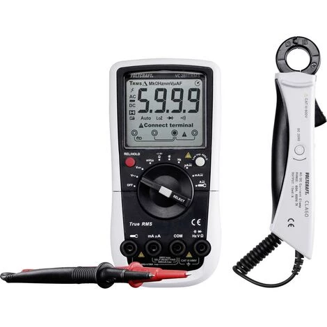 Convient pour l’enseignement et la formation Le multimètre VOLTCRAFT VC281 offre de nombreuses fonctionnalités et est donc adapté à l’enseignement ou la formation. Cet appareil de mesure convient également pour le travail et les loisirs, pour des applications jusqu’à 600 V. D’une simple pression sur une touche, la résistance d’entrée est réduite à court terme de 10 MΩ à 400 kΩ pour éviter les erreurs de mesure dues à des tensions de dispersion. Mesure de courants élevés L’adaptateur pour pince ampèremétrique CLA-40 fourni permet la mesure sans contact de courants alternatifs jusqu’à 40 A. La répartition dans les circuits triphasés peut être déterminée rapidement. Il n’est pas nécessaire d’interrompre le circuit pendant la mesure. Lorsque le commutateur est sur la position pince de courant, le VOLTCRAFT VC-281 affiche la valeur de mesure exacte en Ampères, vu que la pince et le multimètre sont parfaitement compatibles. Grand écran avec 6000 points Avec des chiffres d’une hauteur de 19 mm, ce multimètre offre une très bonne lisibilité. L’écran affiche des valeurs à 4 chiffres jusqu’à 6000 (6000 points) quelle que soit la position de la virgule. Robuste et maniable Grâce à son boîtier à 2 composants avec protection en caoutchouc souple, l’appareil convient également pour les utilisations difficiles. La coque du boîtier en caoutchouc garantit une très bonne prise en main. Le support à l’arrière permet de positionner l’appareil de façon optimale pour la lecture et de garder les deux mains libres pour effectuer la mesure. Des résultats exacts grâce à la mesure de la valeur efficace vraie True RMS La mesure de la valeur efficace vraie TrueRMS permet la mesure exacte des tensions asymétriques et des courants qui différent de la forme de base de l’onde sinusoïdale. Les tensions asymétriques se rencontrent la plupart du temps sur des régulateurs de puissance comme des variateurs, des régulateurs de vitesse de rotation, des régulateurs de commutation cadencés, des chargeurs à impulsion ou des régulateurs de vitesse électronique dans le domaine du modélisme, etc. Les résultats obtenus par les appareils ordinaires pour ces tâches de mesure spécifiques sont parfois très différents d’un appareil à l’autre. Signal sonore d’avertissement Un signal sonore retentit pour indiquer une erreur de branchement des câbles de mesure. Capuchons de protection amovibles Les pointes de mesure sont parfaitement protégées contre les contacts. Il est possible de retirer un capuchon de protection si nécessaire, par exemple pour effectuer des mesures dans les dominos. Indicateur d’usure des câbles de mesure Le cordon de mesure bicolore possède une double isolation. Si la première couche isolante est endommagée, une couche d’une autre couleur est visible. Idéal pour une utilisation dans un établissement de formation : permet de remplacer très tôt les cordons de mesure usagés. Affectation des bornes de mesure La bonne affectation des prises de mesure s’affiche à l’écran en fonction de la grandeur de mesure choisie. Ceci est d’une grande aide pour les débutants et les étudiants, car il permet d’éviter les erreurs d’utilisation. Fusible réarmable Cet appareil dispose d’un fusible réarmable et offre une plage de mesure jusqu’à 400 mA. Sur ce modèle, il n’est plus nécessaire de remplacer les fusibles. Sécurité lors du remplacement de la pile Pour remplacer la pile ou le fusible 10 A, il faut ouvrir le boîtier. Pour des raisons de sécurité, les câbles de mesure ne doivent pas être raccordés. Contrairement aux appareils traditionnels, cet appareil de mesure ne peut pas être ouvert tant que les cordons de mesure sont branchés. Les cordons de mesure peuvent être rebranchés uniquement si le boîtier a été refermé. Green Line Lors de leur conception, les appareils de cette série ont été optimisés pour permettre une longue durée de vie de la pile. Ainsi, l’écran n’offre pas de rétroéclairage. Des résultats de mesure fiables grâce à l’étalonnage d’usine Dans le cadre de l’assurance qualité, tous les appareils de mesure VOLTCRAFT bénéficient d’un étalonnage d’usine lors de leur fabrication. Celui-ci garantit la qualité de l’appareil et le respect des seuils de tolérance indiqués dans les données techniques de la notice d’utilisation. Aucun certificat n’est établi.