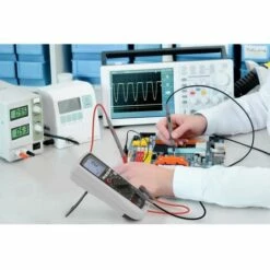 La nouvelle gamme de Voltcraft®. Ce multimètre professionnel robuste, fiable et doté d’une forme ergonomique met l’accent sur la sécurité. Le boîtier breveté ne peut être ouvert que pour le remplacement du fusible et des piles, à condition que tous les cordons de mesures soient débranchés de l’appareil. Le multimètre dispose d’une fonction TLD® intégrée avertissant l’utilisateur lorsque des cordons de mesure sont mal branchés. L’appareil affiche en outre un signal d’alerte pour des tensions 30 V. Ce multimètre dispose d’un boîtier robuste doté d’une protection en caoutchouc souple, de fusibles de haute capacité de 1 000 V, ainsi que d’une commutation d’impédance réduisant la résistance d’entrée par une simple pression de touche, ce qui permet d’éviter les erreurs de mesure dues à une tension de dispersion. Une interface optique fait partie de l’équipement série. L’appareil est conçu pour des mesures dans la catégorie haute tension CAT IV 600 V et CAT III 1 000 V et testé conformément à EN-61010. Robuste et maniable Grâce à son boîtier à deux composants avec protection en caoutchouc souple intégrée, l’appareil est adapté aux utilisations exigeantes. La coque en caoutchouc assure une bonne prise en main de l’appareil. Le support à l’arrière permet de placer l’appareil dans une position facilitant la lecture et de garder les deux mains libres pour effectuer la mesure. Sûr et facile à utiliser La sélection automatique de la plage de mesure garantit une grande simplicité d’utilisation et un choix optimal de la résolution. Cet appareil convient aux professionnels grâce à sa plage de mesure de tension étendue à 1000 V. Elle peut donc être utilisée pour des mesures dans des réseaux de courant triphasé. Les plages de mesure du courant sont protégées contre la surcharge par des fusibles à haut pouvoir de coupure. Résultats fiables grâce à l’étalonnage en usine Tous les appareils Voltcraft bénéficient d’un étalonnage d’usine dans le cadre du contrôle qualité au moment de la production. Il garantit la qualité supérieure de l’appareil et le respect des seuils de tolérance indiquées dans les caractéristiques techniques. Les caractéristiques techniques figurent dans la notice d’utilisation, mais aucun certificat n’est établi.