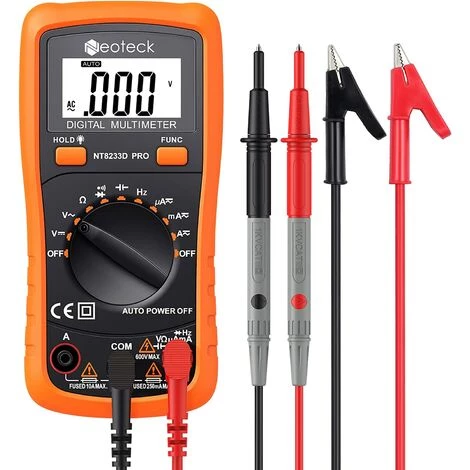 - 【8233D PRO 2000 Counts Multimètre Numérique】Ce muitimètre mesure Tension DC/AC, Courant DC/AC, Résistance, Fréquence 200 KHz, Capacité 2000 μF, lecture maximale dans le temps, buzzer à sélection automatique et en continu.