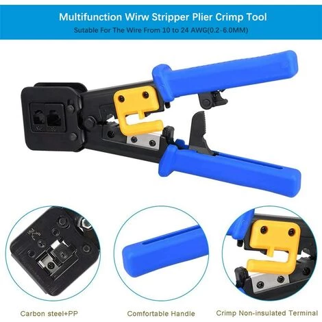 MatĂ©riaux de haute qualitĂ© – Cet outil de sertissage est fabriquĂ© en acier Ă outils professionnel ultra-rĂ©sistant. Noir oxydĂ© pour prĂ©venir la rouille et la corrosion. Il peut ĂŞtre utilisĂ© pendant longtemps. Le manche en PVC texturĂ© peut ĂŞtre facilement dĂ©collĂ© et coupĂ©. Outil de sertissage de câble Ethernet intĂ©grĂ© Ă haute efficacitĂ©, 6 broches pour chambre de sertissage RJ-12 / RJ-11; 8 broches pour chambre de sertissage RJ-45.