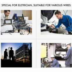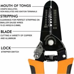 Cette pince à dénuder est livrée avec une poignée en plastique anti-dérapante de haute qualité, un trou pour couteau à dénuder précis, un tranchant pour couper les fils et une fermeture sûre évitant l’ouverture automatique à ressort.