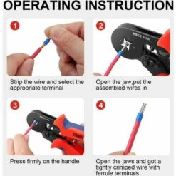 [Kit d’outils de sertissage complet]: Chaque kit de pinces à sertir est livré avec un outil de sertissage et 1200 connecteurs de bornes isolés.La plage de sertissage est de AWG23-7/0.25-10mm2.