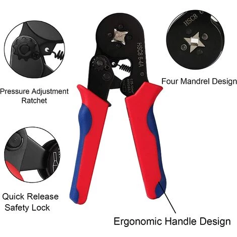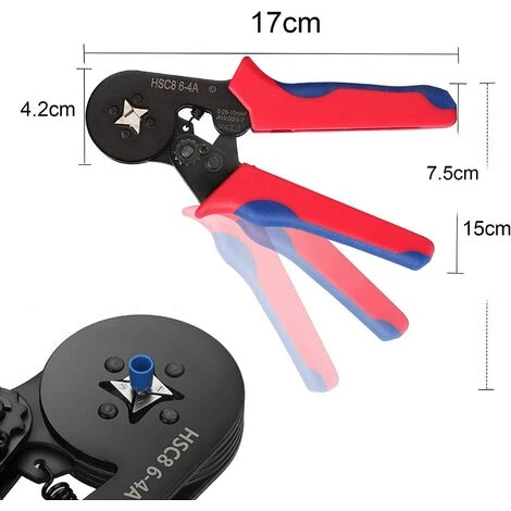 - Application: Les pinces à sertir pour fil de 0.25-10mm², très utile pour la maison, l’usine, l’atelier, le garage, etc. Recommandé aux électriciens, techniciens, utilisateurs à domicile, amateurs et débutants.