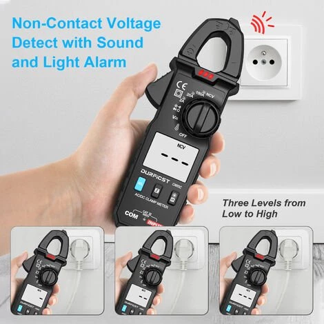 - 【Induction sans contact NCV】: Le test NCV vérifie efficacement l’état électrique en mesurant la force du champ électromagnétique sans toucher aucun fil ; pince courant de fuite juge le niveau de la tension mesurée en fonction de la force du signal de tension détecté, ainsi émettant des alarmes de différentes fréquences