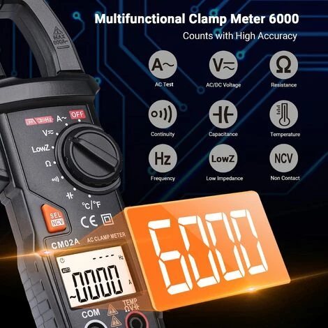- Fonctions spéciales : Testeur Electrique Digital Counts 6000, TRUE RMS, Gamme Automatique, courant, tension, résistance, température, capacité,fréquence, continuité, LED/LCD rétro-éclairage, Avertissement sonore, Test de tension sans contact