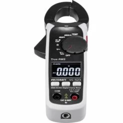 Mesure simple et rapide des courants alternatifs jusqu’à 400 A Contrairement à une mesure effectuée avec un multimètre, il n’est pas nécessaire d’interrompre le circuit électrique lors de la mesure. Parfaitement adaptée à la maintenance de machines et dans les armoires électriques. Fonctions multimètre L’appareil dispose des fonctions de mesure de la tension, de la fréquence, de la température, de la capacité et de la résistance avec sélection automatique de la plage, ainsi que du test de diode, de la valeur effective True RMS et d’un testeur de continuité acoustique. De plus, l’appareil est équipé d’un testeur de tension sans contact (NCV). Écran riche en contrastes avec 4000 points Écran bien lisible quelles que soient les conditions d’éclairage. Cet appareil est plus pratique qu’une pince de courant classique, surtout dans les armoires électriques qui ne sont pas totalement éclairées. L’écran affiche des valeurs à 4 chiffres jusqu’à 3999 (4000 points), quelle que soit la position de la virgule. Bouton Hold accessible avec le pouce La touche Hold permet d’enregistrer le résultat de mesure lorsque celui-ci ne peut pas être lu à l’écran pendant la mesure. Cette touche est placée de façon ergonomique à l’emplacement du pouce, il n’est pas donc pas nécessaire de la rechercher, comme c’est le cas pour les pinces classiques. Éclairage des points de mesure Il est possible d’allumer si nécessaire une LED lumineuse pour éclairer de manière ciblée la zone située devant la pince. Surface antidérapante La pince ampèremétrique VOLTCRAFT VC-522 ne glisse pas sur le support sur lequel elle est posée. Le revêtement en caoutchouc empêche tout glissement sur les surfaces qui ne sont pas horizontales. Robuste et maniable Grâce à son boîtier bi-matière avec protection en caoutchouc souple, l’appareil convient également dans des conditions d’utilisation difficiles. De plus, la coque du boîtier en caoutchouc garantit une très bonne prise en main. Peut être porté à la ceinture Un filetage standard inséré dans le boîtier permet de raccorder le multimètre à des fixations de sécurité ou à des systèmes de sangles. Ainsi, il est possible de protéger l’appareil contre les chutes, notamment lors de travaux en hauteur. Avec mesure de la température La pince ampèremétrique est dotée d’une fonction de mesure de la température avec thermocouples de type K. La sonde de mesure de la température de l’air fournie peut être remplacée par toutes les sondes VOLTCRAFT à thermocouple de type K, pour mesurer des mélanges, des liquides ou surfaces jusqu’à 760 °C. Des résultats exacts grâce à la mesure de la valeur effective réelle True-RMS La mesure de la valeur effective réelle True-RMS permet une mesure exacte des tensions et des courants asymétriques qui diffèrent de la forme de base de l’onde sinusoïdale. Les tensions asymétriques se rencontrent la plupart du temps sur des régulateurs de puissance comme des variateurs, des régulateurs de vitesse, des régulateurs de commutation cadencés, des chargeurs à impulsion ou des régulateurs de vitesse électroniques dans le modélisme, etc. Les appareils classiques mesurant la valeur moyenne donnent parfois pour ces tâches de mesure des résultats très différents d’un appareil à l’autre. Des résultats de mesure fiables grâce à l’étalonnage d’usine Dans le cadre du contrôle qualité, tous les appareils de mesure VOLTCRAFT bénéficient d’un étalonnage d’usine lors de leur fabrication. Celui-ci garantit la grande qualité de l’appareil et le respect des seuils de tolérance indiqués dans les données techniques de la notice d’utilisation. Aucun certificat n’est établi.