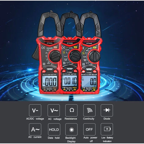 « La nouvelle génération de pince multimètre numérique hautes performances rend votre travail plus facile, plus efficace et plus sûr. Tension AC / DC mesurable, courant AC / DC, fréquence, cycle de travail, résistance, température, diode, continuité, NCV, etc.