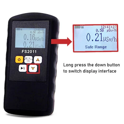 Testeur de rayonnement portable – Cette alarme de dose portable adopte un capteur GM haute sensibilité (compteur Geiger) et une puce avancée, elle convient à la détection des rayons X, γ et β durs. Double affichage du débit équivalent de dose (DER) : valeurs en temps réel et moyennes sur 5 minutes.