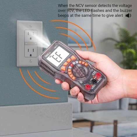 ?DÉTECTION NCV & ARRÊT AUTOMATIQUE : Détecteur de tension alternative sans contact intégré. Lors du test au-dessus de 90V, la lampe de poche s’allumera et le buzzer émettra un bip et assurera votre sécurité. S’éteint automatiquement en 15 minutes s’il n’y a pas d’opération, ce qui permet d’économiser de l’énergie