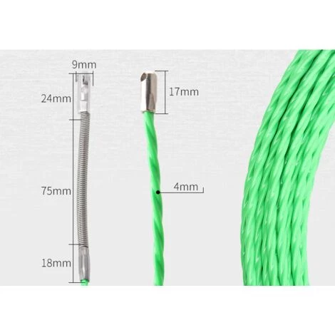 Vous recevrez] : 1 fil de traction d’une longueur totale de 30 mètres, une largeur de fil de 4 mm et un guide-ressort. Connectez un côté du fil avec le guide de ressort de sorte que le fil soit étroitement connecté au fil de traction. Terminez les travaux de pose de câbles.