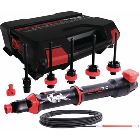 Avec 15 mTR. RunpOriter Spiral Met · Champ d’application au tuyau Ø 16 – 32 mm · Ne peut être utilisé qu’avec le responsable de l’analyse en spirale Met · Les mâchoires intégrées et la tige télescopique permettent une alimentation incomparable de la spirale. Utilisez la troisième serrage et la poignée à rotation en rotation · Cela permet également des rayons serrés et des distances plus longues une alimentation continue · une étendue plastique spéciale de livraison: Dispositif de base avec 5 collectes de plug-in 2 clips de courroie dans le boîtier du système Autres propriétés techniques: · Longueur: 510mm · Charge de traction: 170kg · Poids: 6kg