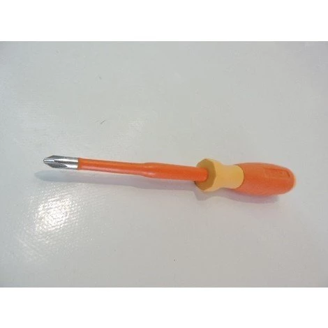 Tournevis cruciforme Derancourt à empreinte Phillips 6x100mm isolé 1000V avec manche bi-matière + lame en acier chromé decolletée PH2 DERANCOURT CRU6X100BD