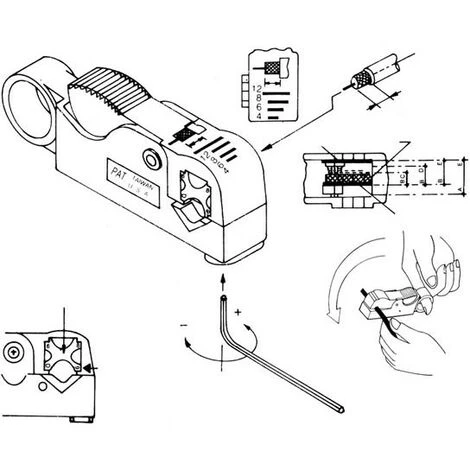 Dénude des câbles RG58/59/62/6/3C2V, etc. sans remplacement les lames. Dénudage de câbles de 4mm/6mm/8mm/12mm. Marques du V-bloc : 6=RG6, 8=RG58 et 3C2V, 9=RG59 / R662.