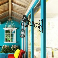 VOCTEIN Lot De 2 Porte-plantes Suspendus Panier à Plantes Fer Crochet Mural Jardinière Crochet Mural Mangeoire à Oiseaux Lanterne Vent Carillon Applique Murale 30 Cm