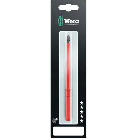 - Avec diamètre de lame réduit et isolation de protection intégréeLes vis PZ peuvent être atteintes et actionnées de cette manièreIsolé, testé en pièces conformément à la norme IEC 60900Entraînement hexagonal 9 mm avec biseau d’introductionLa pointe Wera Black Point offre un parfait ajustement et une protection optimale contre la corrosion.