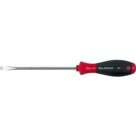 Tournevis plat à lame ronde, Largeur de la lame : 3,0 mm, Épaisseur de la lame 0,5 mm, Longueur de la lame 150 mm, Longueur totale : 254 mm, Ø de la lame : 3,0 mm – Acier au molybdène chrome-vanadium – Chromé mat – Pointe ChromTop® – Poignée multi-composants SoftFinish® – Anti-roulement – Empreinte de la tête avec le symbole de l’entraînement et la taille